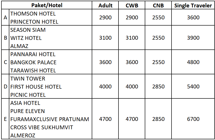 - Akomodasi 3 malam di Bangkok