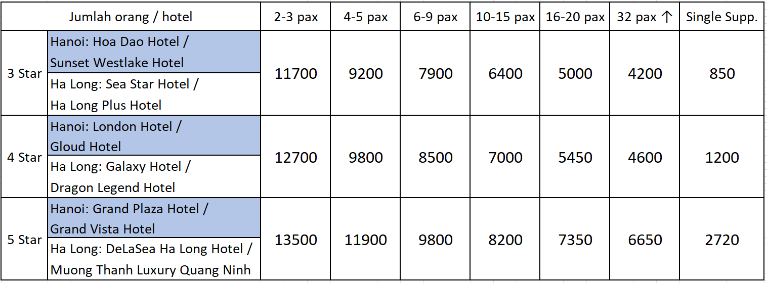 Paket Tour Vietnam 5 hari 4 malam menawarkan perjalanan seru menjelajahi destinasi terbaik, mulai dari suasana modern Hanoi, keindahan alam memesona Ha Long Bay, hingga kekayaan sejarah dan budaya yang khas. Anda juga akan menikmati kuliner otentik Vietnam serta merasakan keramahan penduduk lokal, menjadikan liburan ini pengalaman lengkap dan berkesan untuk dikenang.